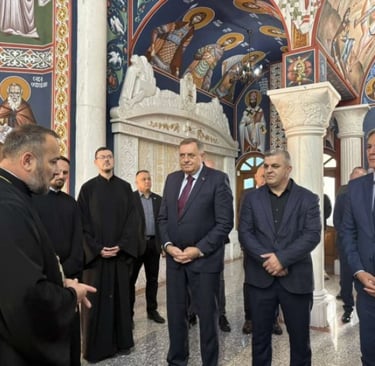 On je istakao da se danas u Spomen-hramu Presvete Trojice u Tesliću poklonio pred spomen-pločom sa imenima 550 srpskih boraca koji su život dali za Republiku Srpsku.